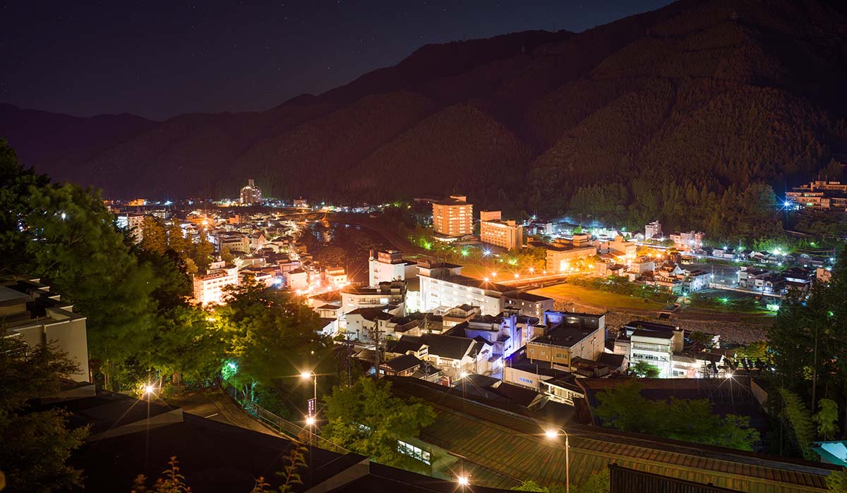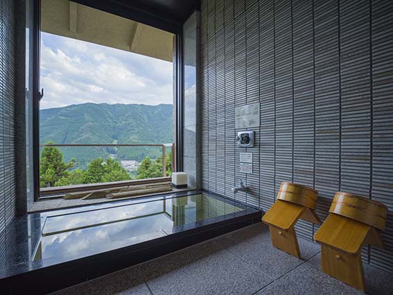 展望台からは下呂の街並を一望出来、大浴場や露天風呂からは飛騨の山並みを見渡す事ができます。