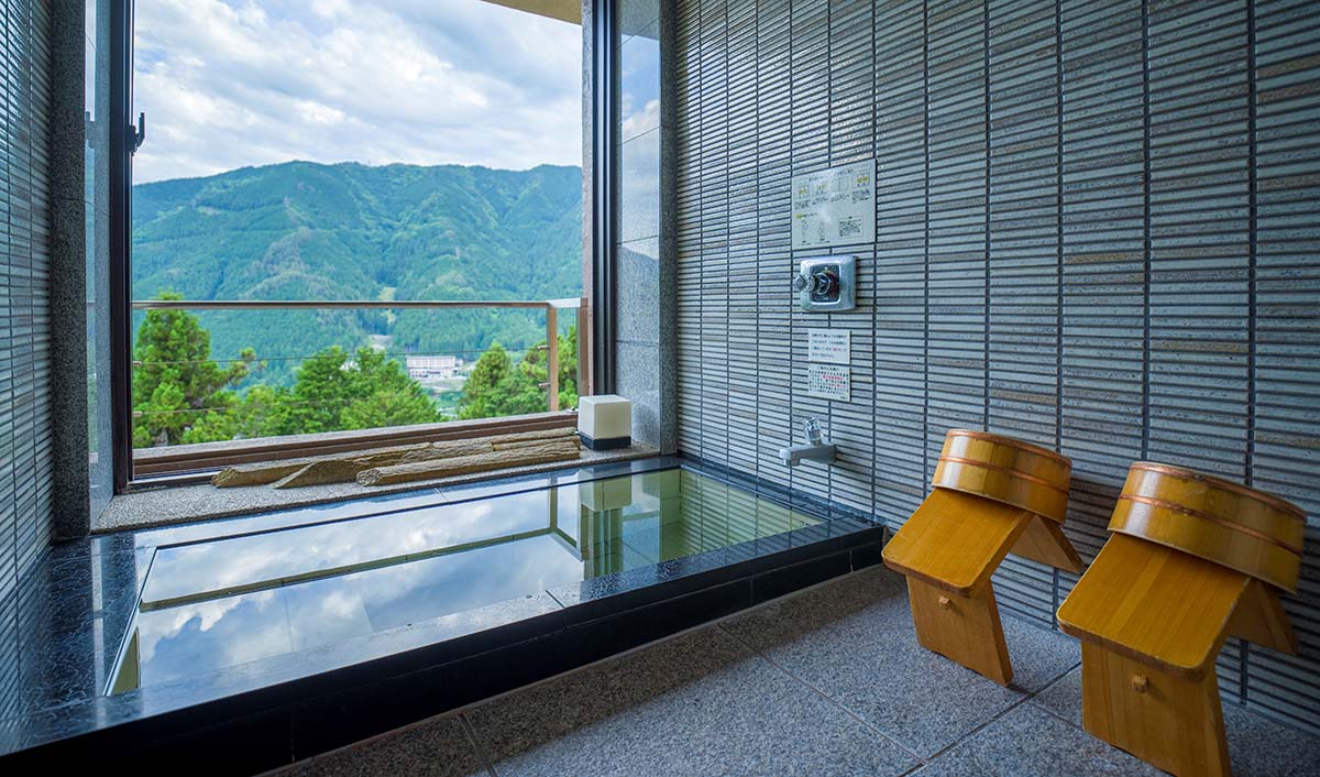 どのお部屋のお風呂やシャワー、洗面台に至るまで、新鮮な源泉をお届けしています。客室でも下呂の名泉が楽しめ、いいお湯が体中に染み込んで心身をじっくりと解してくれます。