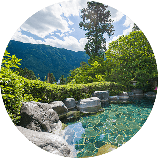 汤之岛馆的客人不仅可以享受客房内的温泉,还可以使用馆内温泉大浴场,大浴场露天温泉,足浴池和家庭私人浴室。