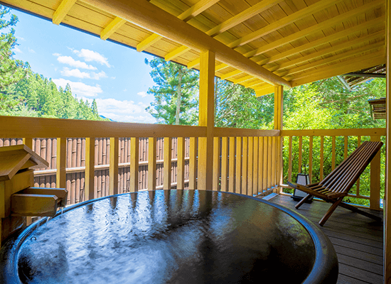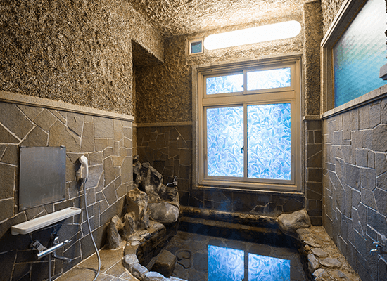 We use Hot spring water not only in public and family’s private baths but also in the shower and baths in the guest rooms.