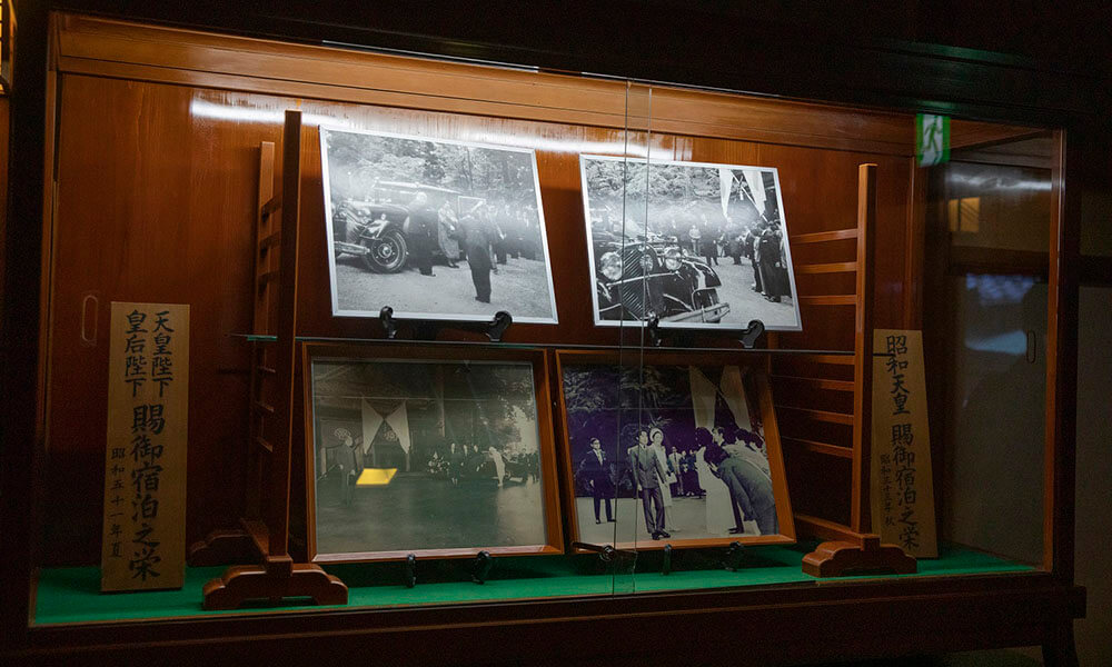この写真ギャラリーには昭和天皇・皇太后両陛下と上皇・上皇后両陛下がご宿泊された時のご様子を飾らせていただいています。当館の誉です。