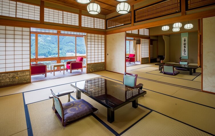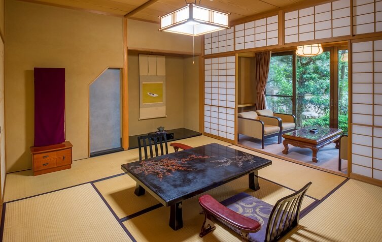 どの部屋も手が届きそうなくらい自然との距離が近く、移ろう日本の四季の風情と文化を存分に味わうことができます。